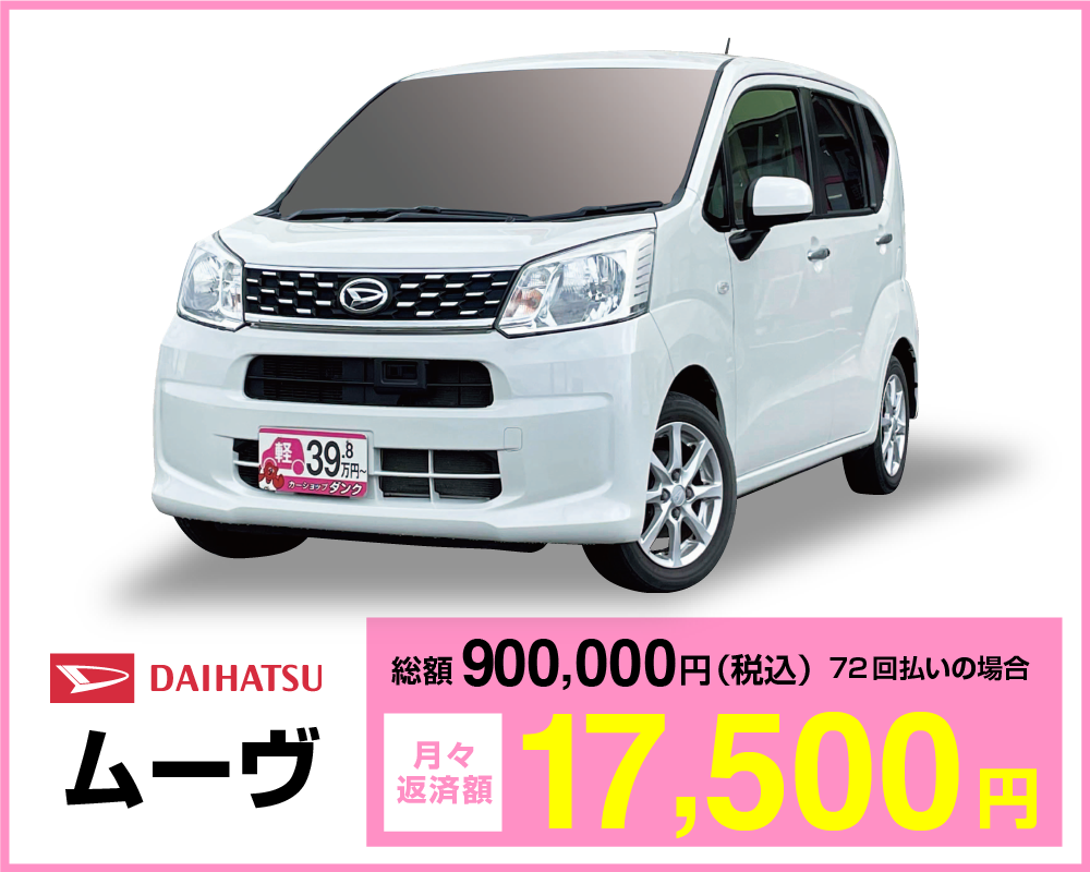 過去に延滞した経験がある、学生もしくは勤続年数など、従来のオートローンでは審査NGの人でも支払い能力がある方はたくさんいます。軽自動車専門店ダンクは、そんな人でもクルマを持てる社会にしたい!と新しいオートローンの取り扱いを始めました。
